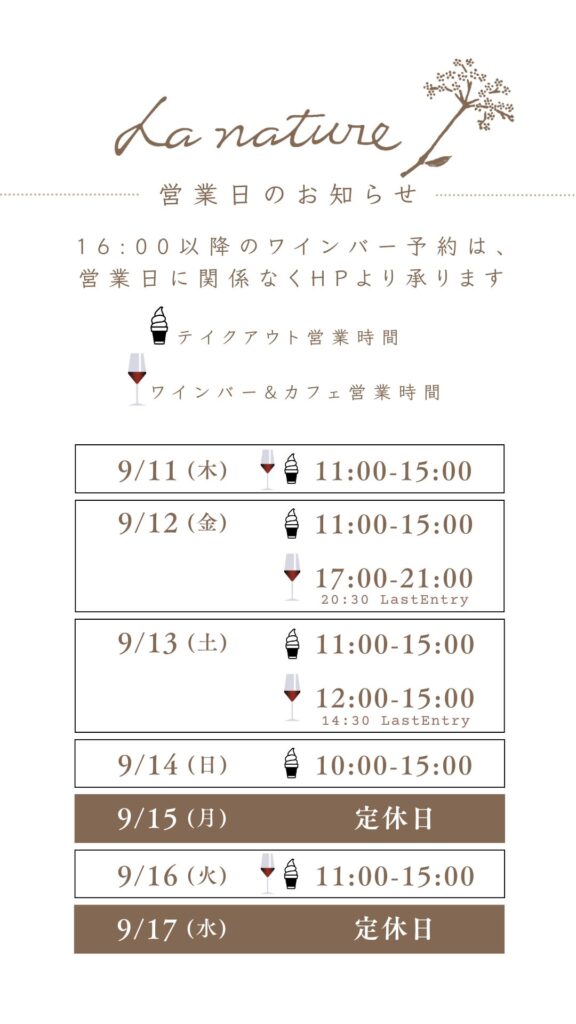 ※16:00以降のワインバーのご予約は、営業日に関わらずHPより承ります。