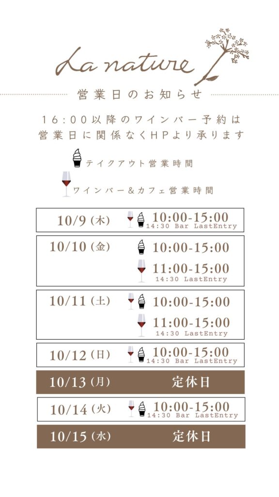 15日水曜日は営業する可能性もあります。その際はインスタにて当日ご案内いたします。