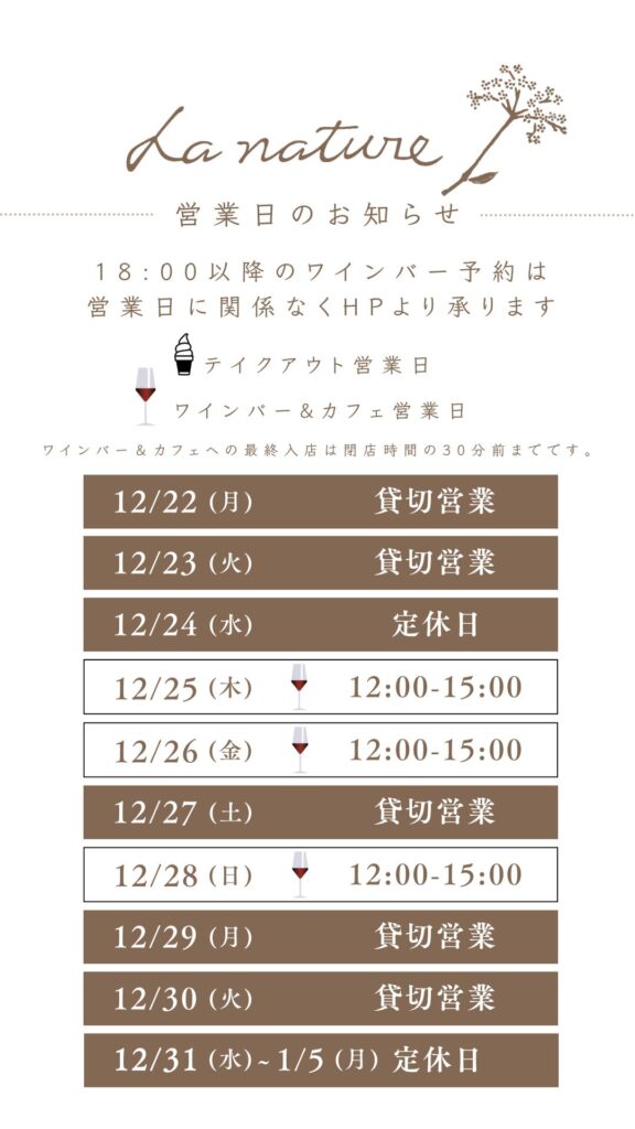 ※18:00以降のワインバーのご予約は、営業日に関わらずHPより承ります。