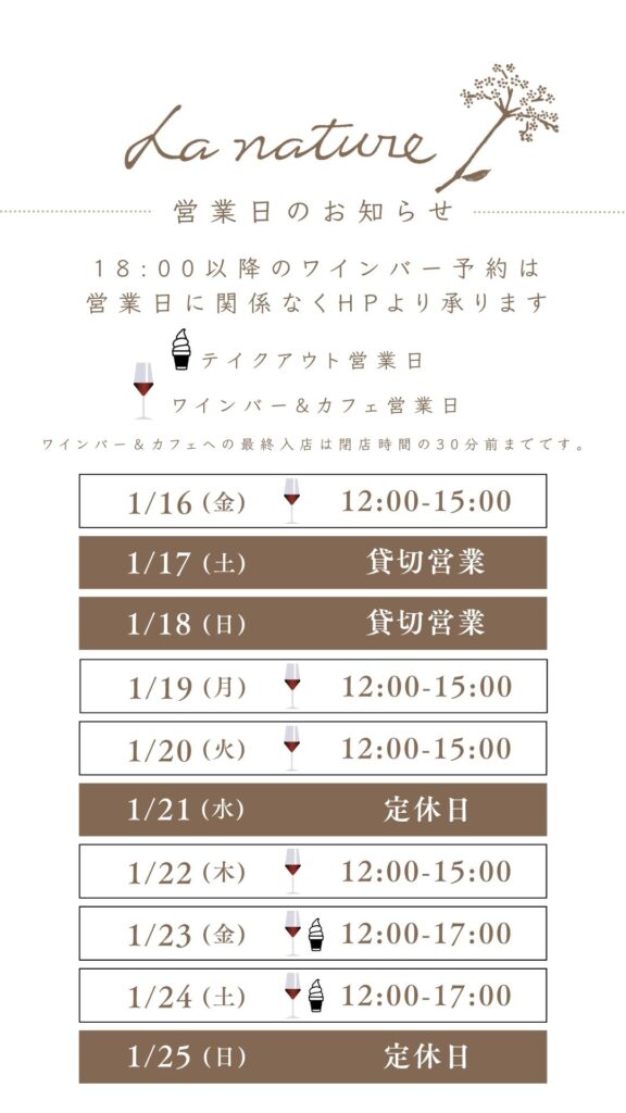 ソフトクリーム、ワインバー、カフェの営業時間は以下をご確認ください。