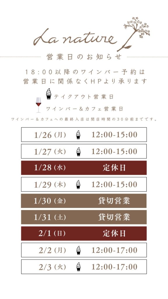 1/26-2/3 営業日のお知らせ