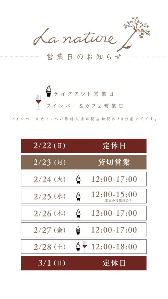 ソフトクリーム、ワインバー、カフェの営業時間は以下をご確認ください。