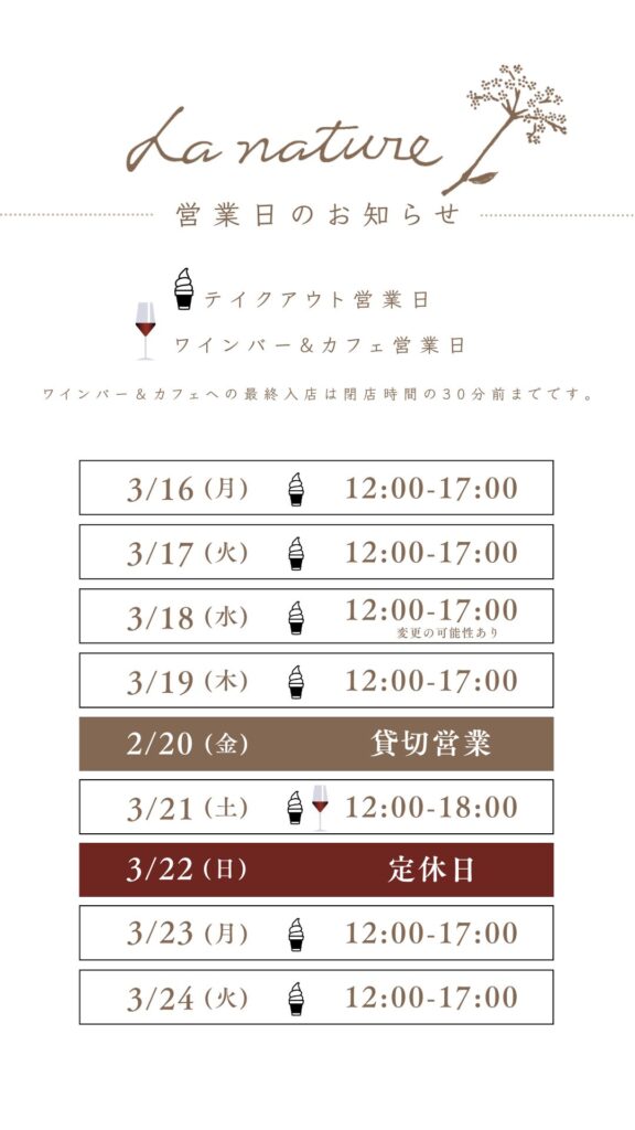 ソフトクリーム、ワインバー、カフェの営業時間は以下をご確認ください。