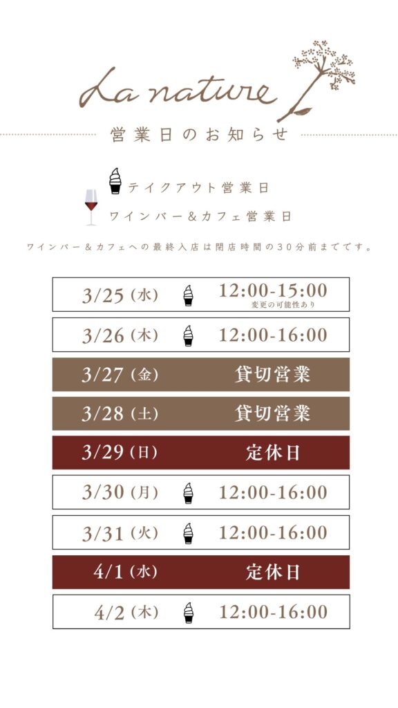 ソフトクリーム、ワインバー、カフェの営業時間は以下をご確認ください。