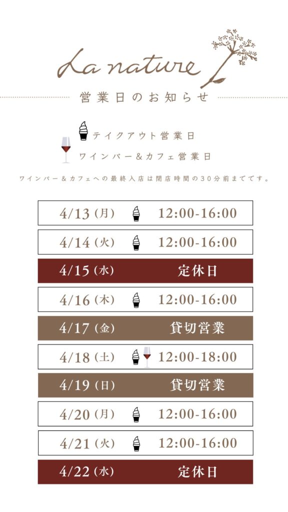 ソフトクリーム、ワインバー、カフェの営業時間は以下をご確認ください。